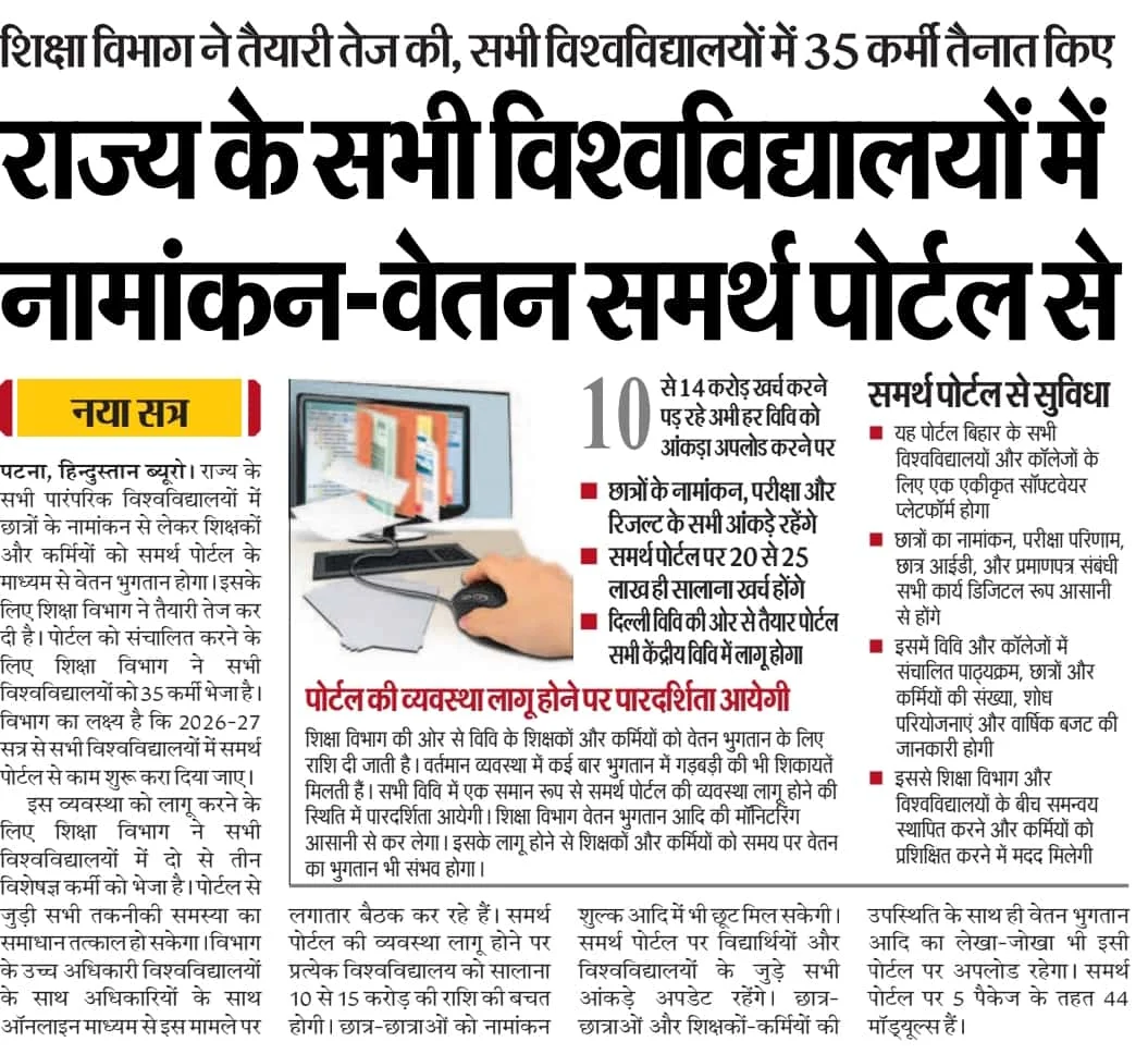 अब बिहार सरकार ने निर्णय लिया है कि राज्य के सभी पारंपरिक विश्वविद्यालय, उनके अधीनस्थ कॉलेज और संबंधित संस्थान इस पोर्टल से जोड़े जाएंगे।