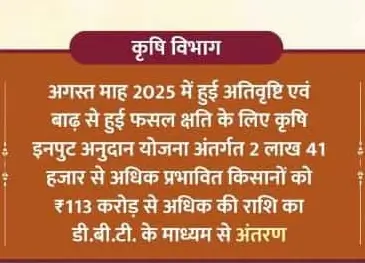 113 करोड़ रुपये से अधिक की राशि किसानों के खातों में भेजी गई है।