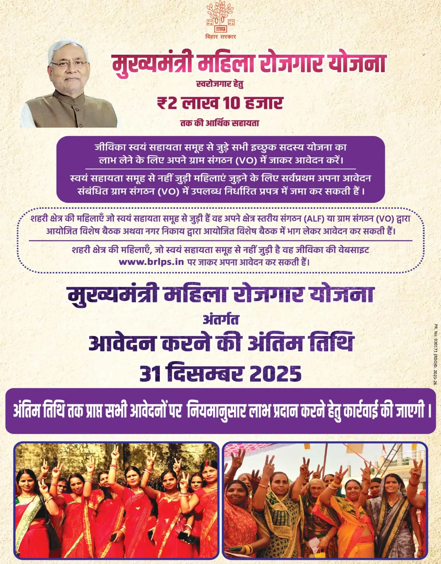 Bihar Mahila Rojgar Yojana Last Date:Impotent Link