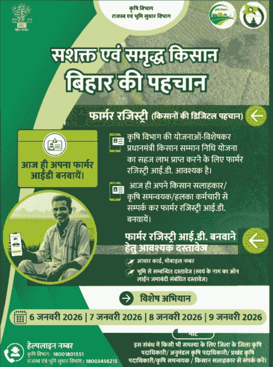 | योजना का नाम | Bihar Farmer ID Registration 2026 |